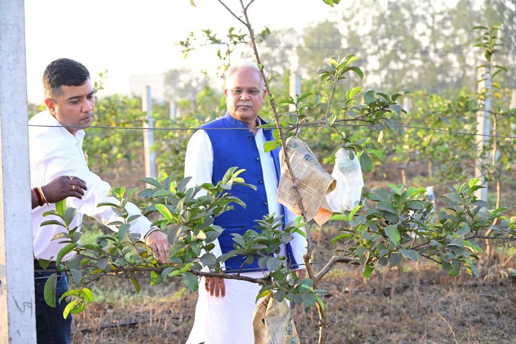 भूपेश बघेल ने फोटो के साथ लिखा- “एक कार्यवाहक के रूप में मुझे जिम्मेदारी सौंपकर गए चैतन्य ने आज मुझे साथ ले जाकर कुरुदडीह के खेतों और भिलाई की बाड़ी का निरीक्षण किया.”