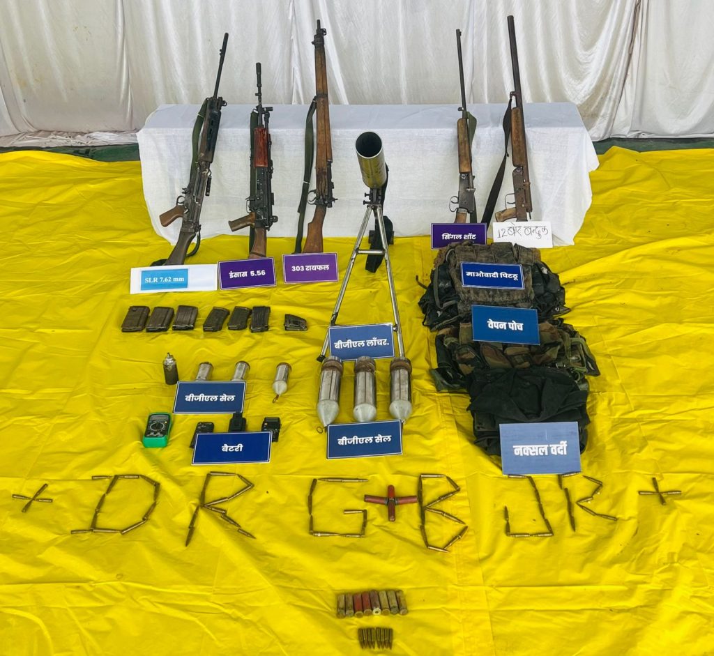 मुठभेड़ स्थल की तलाशी के दौरान सुरक्षाबलों को भारी मात्रा में हथियार और नक्सली सामग्री बरामद हुई। इनमें एक SLR राइफल के साथ तीन मैग्जीन और 15 जिंदा राउंड, एक इंसास राइफल के साथ तीन मैग्जीन और 40 जिंदा राउंड, एक 303 रायफल के साथ एक मैग्जीन और 16 राउंड, एक बीजीएल लांचर (सुरखा) के साथ तीन नग सेल, एक सिंगल शॉट 315 बोर रायफल, एक 12 बोर बंदूक और उसके 12 जिंदा सेल शामिल हैं। इसके अलावा, एके-47 के आठ जिंदा राउंड, एक ग्रेनेड, बीजीएल के छोटे सेल, दैनिक उपयोग की सामग्री और बड़ी मात्रा में नक्सली साहित्य भी बरामद किया गया है।