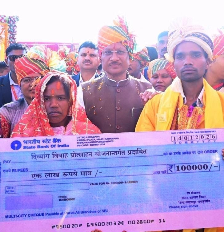 सीएम विष्णुदेव साय ने मुख्यमंत्री कन्या विवाह योजना के अंतर्गत विवाह बंधन में बंधे 200 जोड़ों को उनके नवदाम्पत्य जीवन के लिए हार्दिक शुभकामनाएं और मंगलकामनाएं प्रदान कीं, तथा उनके जीवन में प्रेम, विश्वास और समृद्धि से भरे उज्ज्वल भविष्य की कामना की।